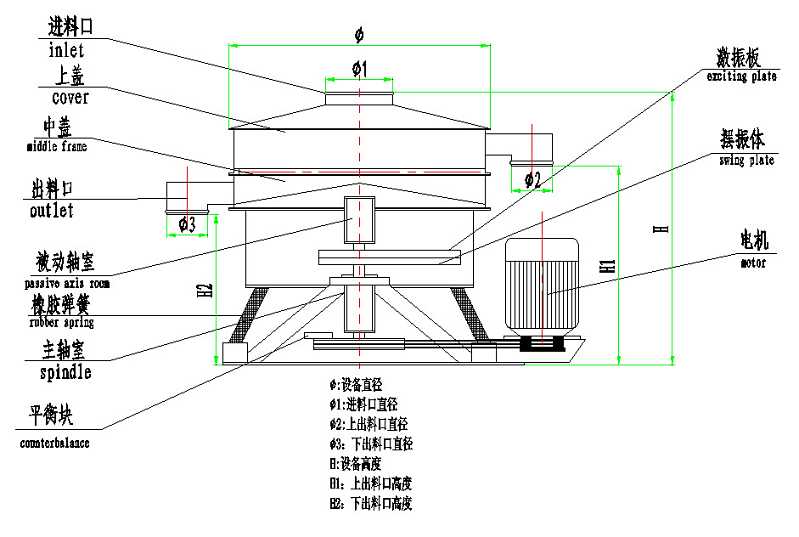 圓形搖擺篩篩面傾角為0~5°,物料在篩面上作作平面回旋式運動,適合各種與顆粒、粉粒有關行業的干、濕式篩分。食品或醫藥行業專用304/316不銹鋼材質,可耐酸堿腐蝕,耐高溫,防生銹,避免物料篩分過程中被污染,干凈衛生,無死角,易于清洗消毒。兩層同樣孔徑的篩網,篩過的物料再次篩分,提高篩分精度,細→中細→中→粗的方式篩分,粗物料起到一定的清潔網孔的作用,物料均勻地分配到兩個層面上,使單臺篩機的處理能力提高近一倍,普通篩分+回旋式篩分,可提高單臺機器的效率。
